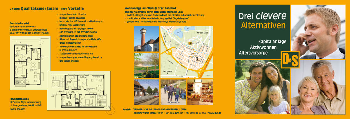 D&S Flyer für die Wohnanlage am Wallstadter Bahnhof